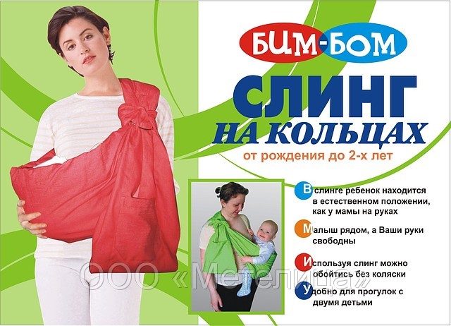 Слинг крепится на двух сварных металлических кольцах, имеющих усилие на разрыв, равный весу в 100 кг. Слинг на кольцах дает возможность носить ребенка 3-мя принципиально различными способами: лежа, сидя и вертикально прижатым к телу взрослого. Ребенок будет в безопасности и всегда рядом с мамой — это так важно для правильного развития малышей.